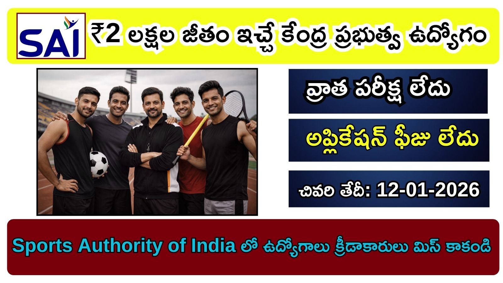 Sports Authority of India Recruitment 2026: నెలకు ₹2 లక్షల జీతంతో కేంద్ర ప్రభుత్వ ఉద్యోగం – క్రీడాకారులకు బంపర్ ఛాన్స్
