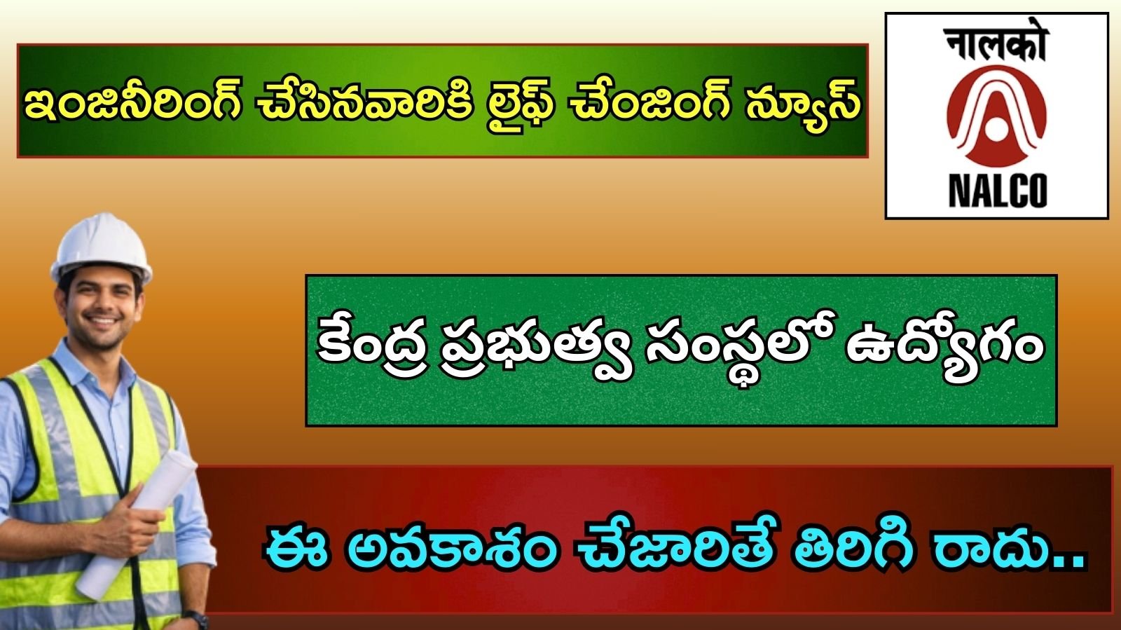NALCO Recruitment 2026: ఇంజినీరింగ్ చేసినవారికి బిగ్ ఛాన్స్ నెలకు ₹1.80 లక్షల జీతంతో కేంద్ర ప్రభుత్వ ఉద్యోగం